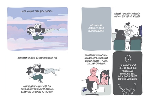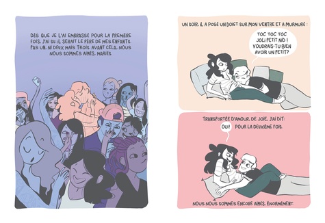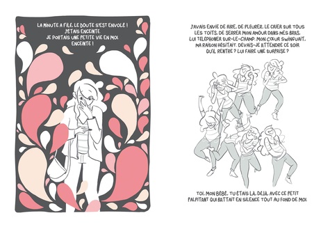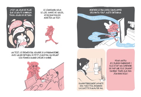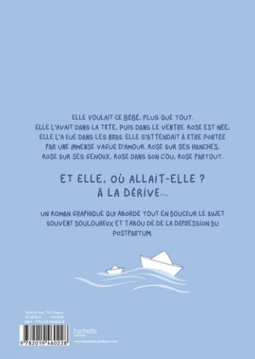 Elle voulait ce bébé, plus que tout. Elle l'avait dans la tête, puis dans le ventre. Rose est née, elle l'a eue dans les bras. Elle s'attendait à être portée par une immense vague d'amour. Rose sur ses hanches, Rose sur ses genoux, Rose dans son cou, Rose partout. Et elle, où allait-elle ? A la dérive... Il est encore commun d'entendre que la grossesse, la naissance et la première année de vie avec un bébé sont des moments épanouissants. Cependant, il peut être encore tabou d'admettre qu'attendre un enfant n'est pas toujours bien vécu par toutes les femmes. De même, la naissance et les premiers mois de vie ne sont pas toujours appréhendés de la même manière. Certaines ne sont pas toujours entendues dans leur souffrance psychique et physique. Ainsi, leur sentiment d'être marginales, voire "mauvaises mères" peut se trouver décuplé. Etre mère prend du temps, le lien n'est pas quelque chose d'inné, le bébé n'est pas toujours gratifiant. C'est en cela que ce projet puise sa force. Cet ouvrage met en scène une femme dans une situation assez normative : elle vit en couple, a un travail et n'a pas de problématiques sociale ou psychologue particulière. Autrement dit, elle n'est pas prédisposée à une dépression du post partum. Et pourtant le mal être peut émerger. Un bande dessinée pour déculpabiliser les mères qui ont souvent besoin de temps pour s'épanouir dans le processus complexe de la parentalité.