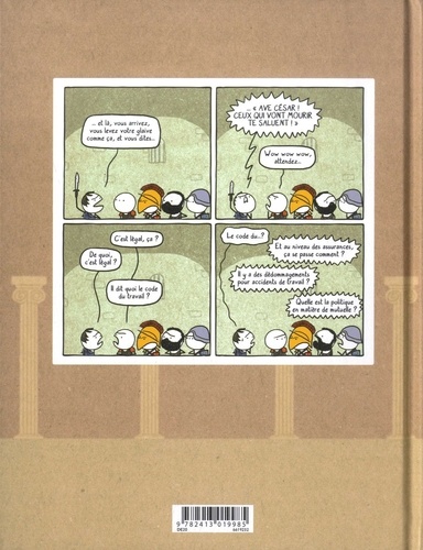 Les questions relatives au sexisme, au racisme, à l'écologie, etc. , s'invitent dans des moments historiques où elles auraient pu émerger, créant un décalage incongru mais bien pertinent. On y croise Christophe Colomb, des Vikings, des Egyptiens, des chevaliers... et des thèmes tels que le street art des cavernes ou le quotidien d'une influenceuse mode à la cour de Versailles... Bref, un livre universel.