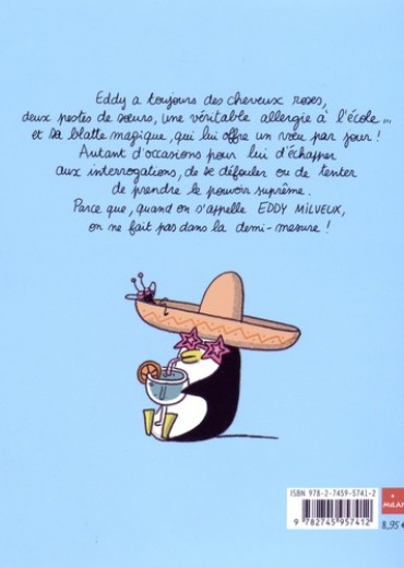 Eddy a toujours des cheveux roses, deux pertes de roeurs, une véritable allergie à l'école... et sa blatte magique, qui lui offre un voeu par jour ! Autant d'occasions peur lui d'échapper aux interrogations, de se défouler ou de tenter de prendre le pouvoir suprême. Parce que, quand on s'appelle Eddy Milveux, on ne fait pas dans la demi - mesure ! Marseillaise d'origine et de coeur, elle vit toujours dans la cité phocéenne ... qu'elle quitte souvent pour de lointains voyages : Sénégal, cambodge, Argentine... Parmi d'autres BD, Lira est aussi l'auteur de "mini patalo". La classe, non ?