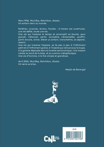 Mars 1956, Mud Bay, Ketchikan, Alaska. Un enfant vient au monde. Fenêtres, lucarnes, écrans, focales : à travers ces ouvertures, une vie défile, toute une vie. Une vie qui traverse le temps et accomplit sa boucle, pour grandir, s'étonner, partir, connaître, s'émerveiller, souffrir, partir encore, aimer, élever un enfant, transmettre, se séparer, revenir. Une vie qui traverse l'espace, se lie peu à peu à l'infiniment petit et à l'infiniment grand, à l'insecte qui remue sous la loupe, à la galaxie déployée dans la lunette astronomique ; à la maison natale au bord de la baie, et au cosmos métaphysique. Une vie d'homme, à la fois simple et grandiose. Avril 2026, Mud Bay, Ketchikan, Alaska. Un verre se brise. Maylis de Kerangal