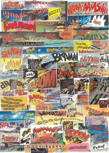Paris a mis en page à l'aide de colle et de ciseaux, à la façon d'un algorithme humain et artisanal, une série de cases extraites de bandes dessinées franco-belges et traversées d'onomatopées en les classant de A à Z. Il met à jour, à travers cet inventaire arbitrairement alphabétique, une esthétique typographique distincte qui a durablement marqué la culture populaire occidentale du XXème siècle, autant que les grands courants qui ont marqué l'histoire des caractères imprimés (calligraphique, gothique, classique, antique, romantique, moderne, Art nouveau...) Ces lettres dessinées répondent aux impératifs techniques de figurer le son dans l'image à l'aide des moyens traditionnels de la bande dessinée, de représenter la dynamique et l'expressivité de ces sons dans les scènes d'action et de genre, et de les rendre graphiquement compatibles et plastiquement intégrées aux pages de de bande dessinée.