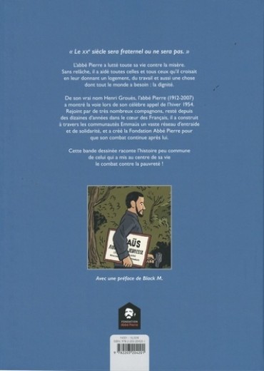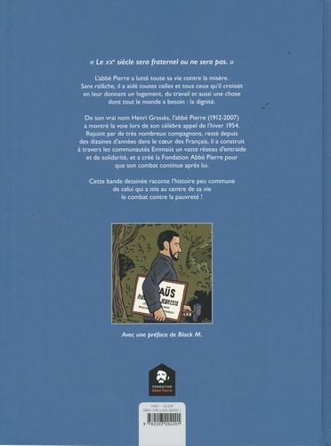 Henri Grouès naît à Lyon en 1912. Eduqué dans une famille catholique tournée vers les autres, il est sensibilisé dès l'enfance à l'entraide et au partage. Se faisant d'abord appeler " Frère Philippe ", Henri adopte après la Seconde Guerre mondiale un nom qui va rester dans toutes les mémoires : celui de l'Abbé Pierre. Réunissant des compagnons pour fonder Emmaüs, il mène dès lors une lutte acharnée contre le mal-logement. A l'hiver 1954, il lance son célèbre appel à la radio, et tout au long de sa vie l'Abbé Pierre a créé des communautés, en France et à travers le monde, afin de venir en aide aux personnes démunies. Par son infatigable action, il nous rappelle que la dignité est à la fois un enjeu de civilisation et un droit universel.