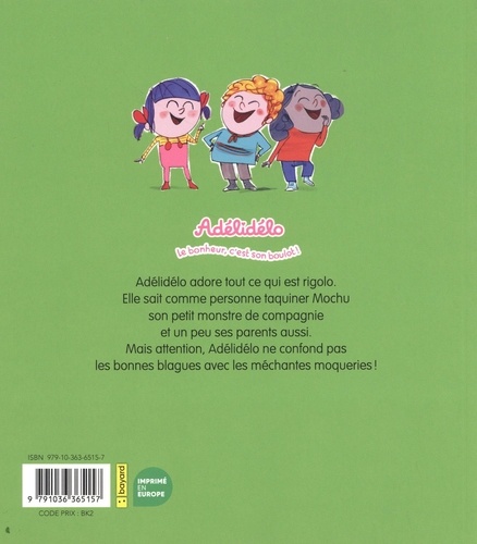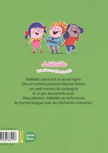 Vous avez déjà vu une gomme qui efface le paysage ? Une ratatouille au sable ? Une sorcière qui n'apparait que dans le noir ? A la maison, à la plage, ou à l'école, Adélidélo transforme toujours les situations du quotidien en blagues rigolotes. Mais gare aux guilis quand les parents s'en mêlent ! Dans ce tome 10 : Blanc comme neige ! La ferme bionique Les joies de la patouille Loup y es-tu ? Grosse frayeur L'école du rire Ah, les bonnes blagues !