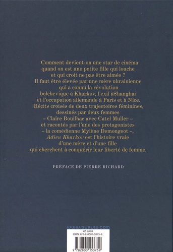 Comment devient-on une star de cinéma quand on est une petite fille qui louche et qui croit ne pas être aimée ? Il faut être élevée par une mère ukrainienne qui a connu la révolution bolchevique à Kharkov, l'exil à Shanghai et l'occupation allemande à Paris et à Nice. Récits croisés de deux trajectoires féminines, dessinés par deux femmes - Claire Bouilhac avec Catel Muller - et racontés par l'une des protagonistes - la comédienne Mylène Demongeot -, Adieu Kharkov est l'histoire vraie d'une mère et d'une fille qui cherchent à conquérir leur liberté de femme.