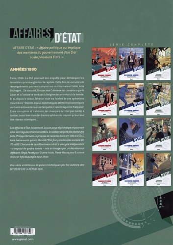 Une plongée sans précédent au coeur des réseaux islamiques... En 1986, la DST continue son enquête pour démasquer les terroristes qui ensanglantent la capitale. Cette fois, les services de renseignement peuvent compter sur un informateur fiable, Anis Bouhageb. Il suit le principal suspect, Fahd Rafia, à la trace... De son côté, l'inspecteur Crémeux est convaincu que le Liban et la Tunisie ne sont pas à l'origine des attentats à la bombe. Même s'il manque cruellement de preuves, lors de l'interpellation musclée de Rafia, certains indices vont se révéler très parlants. Et si depuis le début Téhéran tirait les ficelles de toutes ces opérations meurtrières ? Bientôt enjeux diplomatiques et intérêts économiques vont venir entraver le cours de l'enquête et ralentir la justice française ! Entre corruption et trahisons, les masques ne vont pas tarder à tomber aussi bien dans les hautes sphères du pouvoir qu'au coeur des réseaux islamiques... Avec ce dernier tome d'Affaires d'Etat, Alfio Buscaglia et Philippe Richelle terminent cette série de polars historiques en beauté ! Cette tétralogie foisonnante et très documentée, qui s'inspire librement de la réalité des faits, a permis aux lecteurs de redécouvrir les événements qui ont ébranlé l'Etat français tous au long les années 60, 70 et 80.