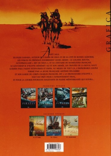 Conclusion magistrale du cycle oriental ! Août 1813. En plein Sahara, autour de l'oasis de Siwa et de sa cité en ruines Aghurmi, le colonel Boutin, ancien agent de Napoléon qui s'est finalement affranchi de l'Empire, règne sur la région en s'autoproclamant " bey de Siwa ". Or c'est lui qui détient les diamants que la jeune Artémis Delambre doit récupérer. Elle compte user de ses charmes appris dans le harem de Mehemet Ali pour le séduire et lui subtiliser les joyaux. Dans le même temps, le gouverneur d'Egypte et son armée, ainsi que les troupes de la Royal Navy guidées par l'agent Fitzpatrick se dirigent vers Siwa. L'affrontement final approche, chaque camp prépare ses armes... Sous la plume de Marc Bourgne et le pinceau de Franck Bonnet, le cycle oriental de cette série de pirates comme on les aime se termine en apothéose ! Un vrai succès populaire puisque le tome 1 en est déjà à son 5e tirage, alors qu'un troisième cycle est d'ores et déjà en préparation.