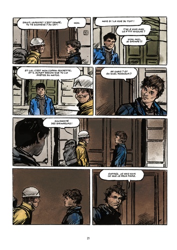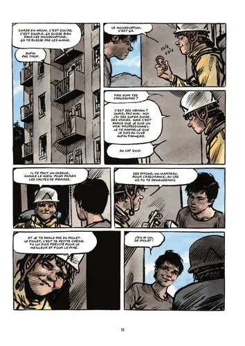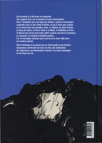 De Grenoble à la Bérarde en mobylette. Des rappels tirés sur la façade du Lycée Champollion. Avec l'exaltation pure qui tape aux tempes, quand on bivouaque suspendu sous le ciel criblé d'étoiles, où qu'à seize ans à peine on se lance dans des grandes voies. La Dibona, le pilier Frendo, le Coup de Sabre, la Pierre Alain à la Meije, la Rébuffat au Pavé : le Massif des Ecrins tout entier offert comme une terre d'aventure, un royaume, un champ de bataille parfois. Car la montagne réclame aussi son dû et la mort rôde dans les couloirs glacés. Récit initiatique d'un gamin qui se rêvait guide et qui devient dessinateur, Ailefroide est tout à la fois une célébration de l'alpinisme, une déclaration d'amour à la haute montagne et une leçon de vie.