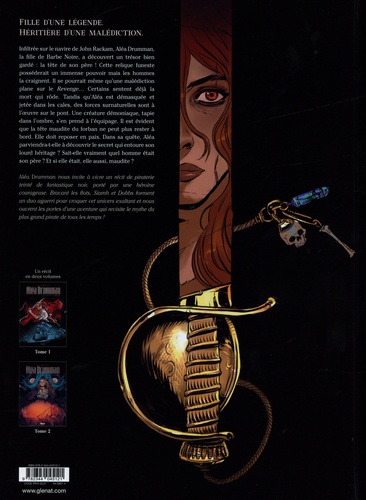 Fille d'une légende. Héritière d'une malédiction. Infiltrée sur le navire de John Rackam, Aléa Drumman, la fille de Barbe Noire, a découvert un trésor bien gardé : la tête de son père ! Cette relique funeste posséderait un immense pouvoir mais les hommes la craignent. Il se pourrait même qu'une malédiction plane sur le Revenge... Certains sentent déjà la mort qui rôde. Tandis qu'Aléa est démasquée et jetée dans les cales, des forces surnaturelles sont à l'oeuvre sur le pont. Une créature démoniaque, tapie dans l'ombre, s'en prend à l'équipage. Il est évident que la tête maudite du forban ne peut plus rester à bord. Elle doit reposer en paix. Dans sa quête, Aléa parviendra-t-elle à découvrir le secret qui entoure son lourd héritage ? Sait-elle vraiment quel homme était son père ? Et si elle était, elle aussi, maudite ? Ce second tome clôt un diptyque chargé d'embruns et de mystères ! Aléa Drumman nous invite à vivre un récit de piraterie teinté de fantastique noir, porté par une héroïne courageuse. Bravant les flots, Siamh et Dobbs forment un duo aguerri pour croquer cet univers exaltant et nous ouvrent les portes d'une aventure qui revisite le mythe du plus grand pirate de tous les temps !