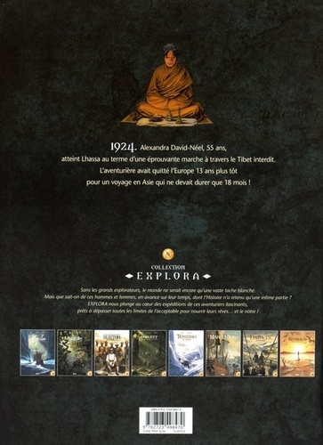 L'odyssée d'une femme éprise de liberté Gyantsé - Tibet, mai 1924. David MacDonald, agent de l'empire britannique, reçoit la visite d'un jeune lama et d'une européenne. Voilà 13 ans qu'Alexandra David-Néel parcourt l'Asie, accompagnée d'Aphur, son boy devenu fils adoptif. Un voyage hors-norme à la découverte de civilisations et de cultures qui dépassent l'Occident. Elle a rencontré des rois, des Maharajas, et même le Dalaï-Lama en personne ! Point d'orgue de son périple : elle a séjourné à Lhassa, la ville interdite, pendant plusieurs mois, déguisée en mendiante. Une prouesse qu'aucune Occidentale n'avait accomplie avant elle... Christian Perrissin et Boro Pavlovic nous font découvrir le parcours passionnant de l'une des exploratrices les plus célèbres de l'Histoire. Un nouvel album au goût d'ailleurs de la collection "Explora", toujours accompagné d'un dossier pédagogique éclairant le contexte historique et politique de l'époque.