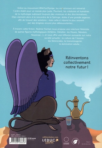 Grâce au mouvement #MeTooOlympe, les monstresses ont renversé l'ordre établi pour un monde plus juste. Pourtant, les créatures et humaines de la mythologie subissent toujours des violences et des discriminations. Elles viennent alors à la rencontre de la Sphinge, dotée d'une grande sagesse, afin de trouver des solutions ; mais celle-ci répond le plus souvent par des énigmes encore plus déboussolantes... A travers cette fiction, Noémie Fachan nous propose une relecture féministe de quinze figures mythologiques (Artémis, Déméter, les Muses, Némésis, Nausicaa...), et nous offre une réflexion puissante sur notre société actuelle : la culture de l'inceste, les féminicides, la transmisogynie, la domination adulte... Réinventons collectivement notre futur !