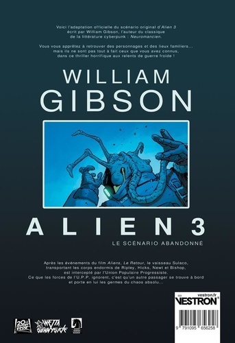 Voici l'adaptation officielle du scénario original d'Alien 3 écrit par William Gibson, l'auteur du classique de la littérature cyberpunk : Neuromancien. Vous vous apprêtez à retrouver des personnages et des lieux familiers... mais ils sont pas tout à fait ceux que vous avez connus, dans ce thriller horrifique aux relents de guerre froide ! Après les événements du film Ariens, Le Retour, le vaisseau Sulaco, transportant les corps endormis de Ripley, Hicks, Newt et Bishop, est intercepté par l'Union Populaire Progressiste. Ce que les forces de l'U.P.P. ignorent, c'est qu'un autre passager se trouve a bord et porte en lui les germes du chaos absolu... Après plusieurs décennies, le scénario abandonné d'Alien 3 écrit par William Gibson est enfin révélé à travers cette adaptation en B. D. ! Pape du Cyberpunk et créateur du terme Cyberespace, l'auteur primé de Neuromancien, New Rose Hotel et Johnny Mnemonic écrit la suite des aventures de Ripley, Hicks, Newt et Bishop dans un futur où le monde connaîtra une nouvelle Guerre Froide.