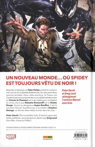 Spider-Man porte son costume noir depuis peu, il ignore donc encore tout de la vraie nature du symbiote ! De son côté, le Super-Bouffon attaque notre héros avec de tout nouveaux pouvoirs : comment les a-t-il acquis ? Le Docteur Strange pourra-t-il aider Peter à affronter son ennemi ? C'est le début d'une aventure qui va emmener le Tisseur bien plus loin qu'il ne l'aurait imaginé ! Après un premier tome sorti en février, le duo artistique Peter David (Spectacular Spider-Man) et Greg Land (Secret Wars : Futur imparfait) nous offre cette fois un one-shot complètement indépendant de leur premier récit. Les auteurs racontent une histoire se déroulant dans le passé de Spider-Man, du temps où il portait le symbiote, qui deviendra par la suite Venom.