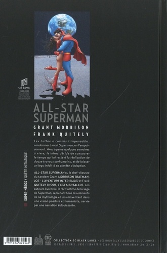 Lex Luthor a commis l'impensable : condamner à mort Superman, en l'empoisonnant. Avec à peine quelques semaines à vivre, le héros décide de consacrer le temps qui lui reste à la réalisation de douze travaux surhumains, et de laisser un legs inédit à sa planète d'adoption. All-star Superman ou le chef-d'oeuvre du tandem Grant MORRISON (Batman, Joe - L'aventure Interieure) et Frank QUITELY (Nou3, Flex Mentallo). Les auteurs livrent ici le récit ultime de la saga de Superman, reprenant tous les éléments de sa mythologie et les réinventant dans une vision positive et humaniste, servie par une narration éblouissante.