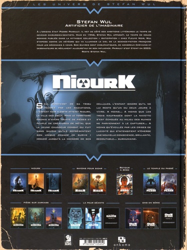 Dernier tome. Seul survivant de sa tribu décimée par les radiations, l'enfant noir a enfin atteint Niourk, la ville des dieux. Mais irradié jusqu'à la moindre de ses cellules, il ignore qu'il ne lui reste qu'un ou deux jours à vivre. À moins… À moins que les trois naufragés dont la navette s'est échouée au milieu des ruines ne parviennent à le capturer… À moins qu'éveillée par les crises de lucidité qui s'intensifient n'émerge une nouvelle conscience, brillante, redoutable… surhumaine.
