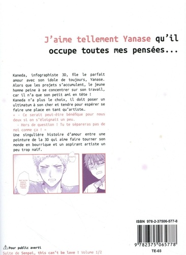 Kaneda, infographiste 3D, file le parfait amour avec son idole de toujours, Vanase. Alors que les projets s'accumulent, le jeune homme peine à se concentrer sur son travail, car il n'a que son petit ami en tête ! Kaneda n'a plus le choix, il doit poser un ultimatum à son cher et tendre pour espérer se faire une place en tant qu'artiste... Une singulière histoire d'amour entre une pointure de la 3D qui aime faire tourner son monde en bourrique et un aspirant artiste un peu trop naïf.