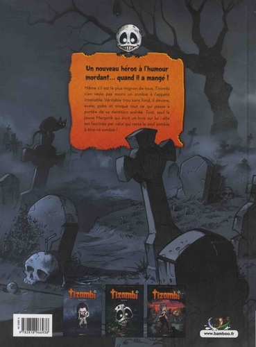 Le héros qui a du mordant ! Même s'il est le plus mignon de tous, Tizombi n'en reste pas moins un zombie à l'appétit insatiable. Il croque tout ce qui passe à portée de sa dentition acérée. Tout, sauf la jeune Margotik, son amoureuse humaine. Mais si la jeune fille aime toujours autant partager du temps avec ses amis zombies, elle aimerait bien avoir un petit animal de compagnie. On peut compter sur Tizombi, FatAl et Tékaté pour essayer de satisfaire les désirs de leur amie bien vivante. Mais pas sûr qu'un teckel zombie ou un chat mort-vivant la comble de joie ...
