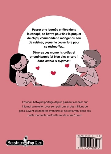 Passer une journée entière dans le canapé, se battre pour finir le paquet de chips, commander à manger au lieu de cuisiner, piquer la couverture pour se réchauffer... Dévorez ces moments drôles et attendrissants (et bien plus encore ! ) dans Amour & pyjamas ! Catana Chetwynd partage depuis plusieurs années sur internet sa relation avec son petit ami et des millions de gens suivent ses tendres aventures et se retrouvent dans ces petits moments qui font le sel de la vie à deux.