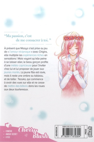 A présent que Maaya s'est prise au jeu de "l'amour réciproque" avec Chigira, elle multiplie les expériences riches en sensations ! Mais voyant qu'elle peine à se laisser aller, le beau garçon profite d'une météo capricieuse pour l'inviter chez lui et lui proposer de jouer aux jeunes mariés. La jeune fille est ravie, mais il reste une ombre au tableau, et de taille : Tezuka, qui commence à avoir des vues sur elle et ne cesse de mettre des bâtons dans les roues aux deux tourtereaux.