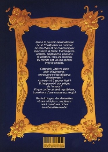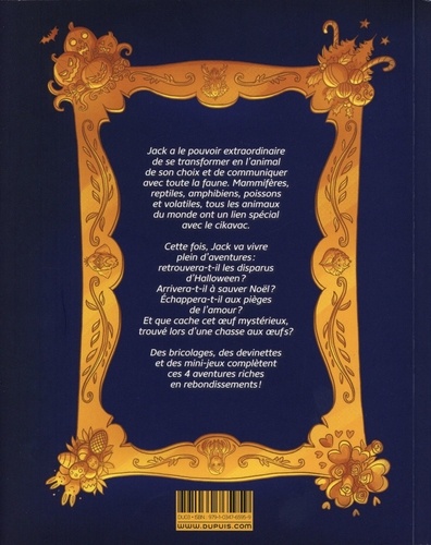 A travers quatre histoires courtes, Jack nous emmène dans des aventures surprenantes, éducatives et drôles : que ce soit pour conseiller une castor trop romantique dans ses histoires de coeur, enquêter sur la disparition des villageois lors de la nuit d'Halloween, comprendre pourquoi le père Noël n'a pas distribué de cadeaux ou tenter de casser un oeuf de Pâques particulièrement récalcitrant, les aventures de Jack sont toujours l'occasion de répéter les valeurs de respect de la différence et de protection de la nature. Cet album offre également de nombreux bonus : jeux, pages pédagogiques ou cours de dessin. Kid Toussaint et Miss Prickly font la paire dans cette nouvelle série fantastique qui fait rire et réfléchir ! Aventure, merveilleux et danger se mêlent dans ce récit abordant des thèmes fondamentaux tels que la différence et la protection de l'environnement.