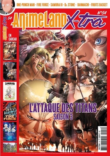 DEUX COUVERTURES DIFFERENTES POUR LE NUMERO D'ETE : ONE-PUNCH MAN ou L'ATTAQUE DES TITANS saison 3 arc 2 Dans ce nouveau numéro d'été, on vous parle de shônen, mais pas que ! Au programme : Le retour en force de One-Punch Man et de L'Attaque des Titans. On revient également sur : les sorties anime événement Dr. Stone et Fire Force ; les sorties manga Samurai 8 et Blizzard Axel... Sans oublier les rubriques habituelles : musique, vivre au Japon, on a testé pour vous... 6 posters inédits vous attendent dans ce nouveau numéro ! Inclus : posters L'Attaque des Titans, One Punch Man, Fire Force, Samurai 8, Is it wrong to try to pick up girls in a dungeon. JEU VIDEO : Code Vein, FF XIV : Shadowbringers DOSSIER : Les shônen de l'été - Fire Force, Dr. Stone, One Punch Man ANIME : Demon Slayer, L'Attaque des Titans, Fruits Basket, Sarazanmai, Made in Abyss - L'aube du voyage et Le crépuscule errant, Danmachi - Arrow of the Orion MANGA : Blizzard Axel, Kemono Incidents, Samurai 8, Mes voisins les esprits, Ariadne l'empire céleste, Fairy Tail, La grande aventure de Happy MUSIQUE : Ai Ôtsuka RAYONS X : Les meilleurs isekai Mais aussi les fiches techniques et nos rubriques habituelles en direct du Japon : On a testé pour vous (Kaburinbô), Vivre au Japon (Minobusan Kuonji), Dessins, Jeux