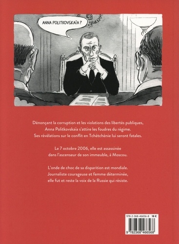 Dénonçant la corruption et les violations des libertés publiques, Anna Politkovskaïa s'attire les foudres du régime. Ses révélations sur le conflit en Tchétchénie lui seront fatales. Le 7 octobre 2006, elle est assassinée dans l'ascenseur de son immeuble, à Moscou. L'onde de choc de sa disparition est mondiale. Journaliste courageuse et femme déterminée, elle fut et reste la voix de la Russie qui résiste.
