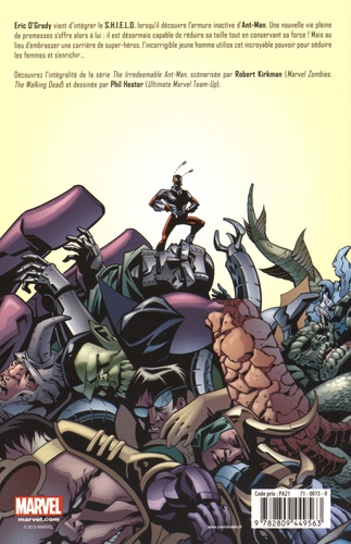 Découvrez le super-héros le moins doué du monde ! Quand un agent de bas niveau du S. H. I. E. L. D. met la main sur le costume d'Ant-Man conçu par Hank Pym, les problèmes ne font que commencer. D'autant plus qu'Eric O'Grady utilise ses nouveaux pouvoirs... à ses propres fins. Il va, malgré lui, croiser la route des Mighty Avengers et se retrouver au coeur des événements de Civil War et World War Hulk. (Contient les épisodes US Amazing Fantasy (2004) 15(V) ; Civil War : Choosing Sides 1(II) ; The Irredeemable Ant-Man 1-12, inédits)