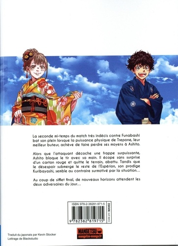La seconde mi-temps du match très indécis contre Funabashi bat son plein lorsque la puissance physique de Trepone, leur meilleur buteur, achève de faire perdre ses moyens à Ashito. Alors que l'attaquant décoche une frappe surpuissante, Ashito bloque le tir avec sa main. Il écope sans surprise d'un carton rouge et quitte le terrain, abattu. Tandis que le désespoir submerge le reste de l'Espérion, son prodige Kuribayashi, semble au contraire surmotivé par la situation... Au coup de sifflet final, de nouveaux horizons attendent les deux adversaires du jour...