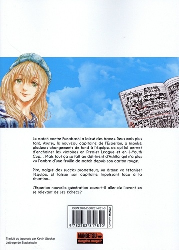 Le match contre Funabashi a laissé des traces. Deux mois plus tard, Akutsu, le nouveau capitaine de l'Esperion, a impulsé plusieurs changements de fond à l'équipe, ce qui lui permet d'enchaîner les victoires en Premier League et en J-Youth Cup... Mais tout ça se fait au détriment d'Ashito, qui n'a plus vu l'ombre d'une feuille de match depuis son carton rouge. Pire, malgré des succès prometteurs, un drame va tétaniser l'équipe, et laisser son capitaine impuissant face à la situation... L'Esperion nouvelle génération saura-t-il aller de l'avant en se relevant de ses échecs ? Ecrit et dessiné par Yûgo Kobayashi et édité depuis 2015 par Shogakukan au Japon, Ao Ashi a remporté la 65e édition des Manga Awards en 2019, une des récompenses les plus prestigieuses du monde de la bande dessinée dans l'archipel. Suivez, tome après tome, de son île natale jusqu'aux sommets du Tokyo Esperion FC, les aventures d'Ashito Aoi, numéro 10 surdoué et facétieux, destiné à révolutionner le football japonais.