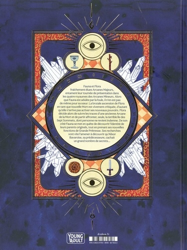 Fauna et Flora fraichement élues Arcanes Majeurs, entament leur tournée de présentation dans les quatre royaumes des Arcanes Mineurs. Alors que Fauna est adulée par la foule, n'en est pas de même pour sa soeur. La brutale ascension de Flora en tant que nouvelle Mort est vivement critiquée, d'autant qu'elle n'arrive pas activer ses nouveaux pouvoirs. Flora décide alors de suivre les traces d'une ancienne Arcane de la Mort et de partir affronter, seule, la terrible île des Sept Sommets, dont personne ne revient indemne. De son côté Fauna se met en quête de découvrir l'identité de leurs parents originels, tout en prenant ses nouvelles fonctions de Grande Prêtresse. Ses recherches vont vite l'amener à découvrir qu'Alixor Bavaroise, sa prédécesseure, cachait un grand nombre de secrets...