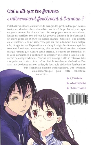 Futaba Kiryû, 32 ans, est autrice de mangas. Ce qu'elle adore par-dessus tout, c'est dessiner des shônen bien sociaux ! Le problème, c'est que ce genre ne marche plus du tout... Du coup, pour tenter de vraiment lancer sa carrière, son éditeur lui propose (impose ?) de s'essayer à un autre genre de shônen : le harem manga ! Gros hic : elle déteste ça, et surtout... elle ne s'intéresse pas du tout à l'amour. Bien malgré elle, et agacée par l'injonction sociale qui exige des femmes qu'elles tombent forcément amoureuses, elle entame l'écriture d'un shônen manga romantique. Contre toute attente, le succès est immédiat, et la voilà condamnée à continuer de dessiner une série à laquelle elle-même ne comprend rien... Pour ne rien arranger, elle se retrouve très vite prise entre deux feux : d'un côté, la touchante vénération d'un assistant de douze ans son cadet, de l'autre, la séduction flamboyante d'un scénariste d'anime quadragénaire. Une situation cauchemardesque pour cette célibataire endurcie...