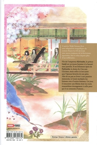 Adapté d'une oeuvre majeure de la littérature japonaise, Le Dit du Genji raconte la vie du prince Hikaru Genji à la cour impériale du Japon pendant l'ère Heian. Charmeur et raffiné, sa beauté ne laisse indifférente aucune des femmes qu'il veut séduire. Multipliant les conquêtes, rien ne l'arrête. Il tombe éperdument amoureux de sa belle-mère, Fujitsubo. Incapables de dominer leur passion, ils transgressent l'interdit. Un acte qui vaudra au prince surnommé "le Radieux" , souffrance et regrets tout au long de sa vie. Le Dit du Genji est une oeuvre majeure de la littérature japonaise du XIe siècle que l'on attribue à Murasaki Shikibu. Elle est considérée comme le premier roman psychologique et représente un témoignage précieux sur la culture, la politique et les moeurs de la période Heian, marquée par de nombreuses mutations et par l'importance de la cour impériale. Jeune veuve, l'autrice devient dame de compagnie à la cour. Son existence au sein de l'élite impériale va lui inspirer cette oeuvre magistrale dans laquelle évoluent près de 300 personnages sur plus de 1500 pages. A travers le destin politique et les intrigues amoureuses du prince Genji, Shikibu nous offre un trésor historique réfléchissant sur la condition féminine et les comportements humains de l'époque. Le Dit du Genji continue d'inspirer de nombreux artistes comme Waki Yamato, dont l'adaptation en manga a été publiée entre 1979 et 1993 dans le magazine Mimi des éditions Kodansha. Elle a connu un succès phénoménal avec plus de 18 millions d'exemplaires vendus au Japon. Cette oeuvre s'inscrit dans la riche carrière d'une autrice connue jusqu'ici en France pour l'adaptation en anime de Marc et Marie (Haikara-san Ga Toru).