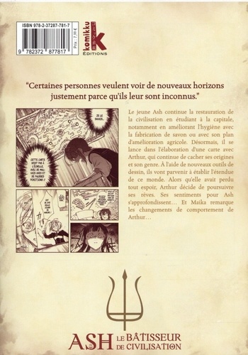 Grâce aux livres, une civilisation va renaître de ses cendres ! Le jeune Ash continue la restauration de la civilisation en étudiant à la capitale, notamment en améliorant l'hygiène avec la fabrication de savon ou avec son plan d'amélioration agricole. Désormais, il se lance dans l'élaboration d'une carte avec Arthur, qui continue de cacher ses origines et son genre. A l'aide de nouveaux outils de dessin, ils vont parvenir à établir l'étendue de ce monde. Alors qu'elle avait perdu tout espoir, Arthur décide de poursuivre ses rêves. Ses sentiments pour Ash s'approfondissent... Et Maika remarque les changements de comportement de Arthur...