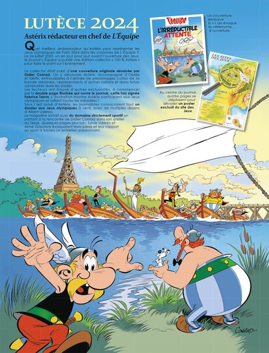 Retrouvez, Astérix aux jeux Olympiques dans une nouvelle édition spéciale au tirage limité, avec une nouvelle couverture et un dossier documentaire actualisé. Faire la fête et laminer ses adversaires : voilà bien ce que les gaulois préfèrent. Et lorsqu'ils apprennent que les Romains du camp d'Aquarium s'entraînent pour représenter Rome aux prochains jeux olympiques, ils n'ont qu'une envie : y participer eux aussi ! Astérix et ses amis se voient déjà vainqueurs, mais leur affaire se complique : la potion magique relève du dopage et est par conséquent formellement interdite. La palme du vainqueur s'éloigne. A moins que... En supplément de l'histoire : Un dossier inédit de 16 pages pour tout savoir sur l'albumDes infos exclusives