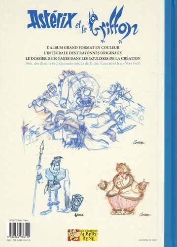 Astérix, Obélix et Idéfix sont de retour pour une 39e aventure. Accompagnés du plus célèbre des druides, ils s'apprêtent à partir pour un long voyage en quête d'une créature étrange et terrifiante. Mi-aigle, mi-lion, énigmatique à souhait, le Griffon sera l'objet de ce grand voyage ! Toujours réalisée par le talentueux duo formé par Jean-Yves Ferri au scénario et Didier Conrad au dessin, nul doute que cette nouvelle aventure proposera une quête épique et semée d'embûches à nos héros à la recherche de cet animal fantastique ! Le duo, toujours à pied d'oeuvre pour imaginer de nouvelles aventures, s'inscrit dans le fabuleux univers créé par René Goscinny et Albert Uderzo. Cette édition en grand format (26 x 36. 5 cm) de l'album comprend 128 pages, avec dos carré toilé et tranchefile. Deux types de papier différents sont utilisés pour réserver le plus bel écrin à une grande variété de créations graphiques. Au programme : l'album en couleur, l'intégrale des crayonnés originaux, et un dossier de 30 pages avec de nombreux dessins et documents de travail inédits de Jean-Yves Ferri et Didier Conrad.