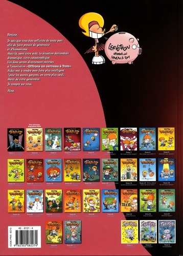 Bonjour, je sais que vous êtes sollicités de toute part afin de faire preuve de générosité et d'humanisme. Mais là, sans votre aide, la situation deviendrait dramatique, voire catastrophique. Vos dons seront directement reversés à l'association "Offrons un cerveau à Tom". Aidez-moi à rendre mon frère plus intelligent (pour les autres garçons, on verra plus tard). Merci de votre générosité. Je compte sur vous. Nina.