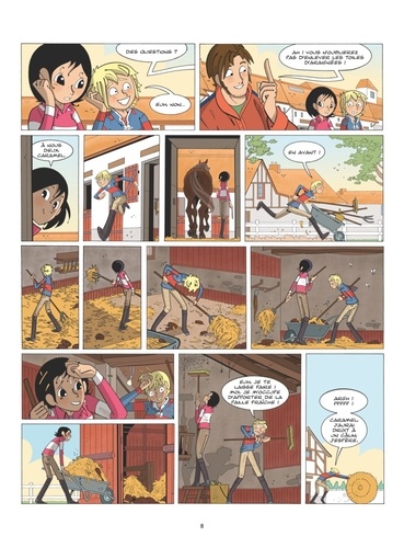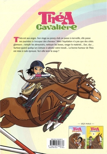 La vie bondissante d'une passionnée d'équitation ! Théa est aux anges. Son stage se passe à merveille, elle peut pratiquer sa passion toute la journée et elle a même rencontré l'amour ! Mais l'équitation n'a pas que ses côtés glamour. Remplir les abreuvoirs, nettoyer les boxes, ranger le matériel... tout cela fait aussi partie de la vie en club, et ce n'est pas une partie de plaisir tous les jours. Surtout quand quelqu'un s'amuse à saboter votre travail... La bonne humeur de Théa est mise à rude épreuve. Va-t-elle tenir le coup ? Avec Théa cavalière, les jeunes lectrices et lecteurs ont enfin une série de BD qui raconte la vie d'un centre équestre et la relation fascinante entre l'humain et le cheval !