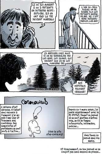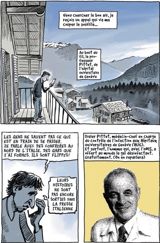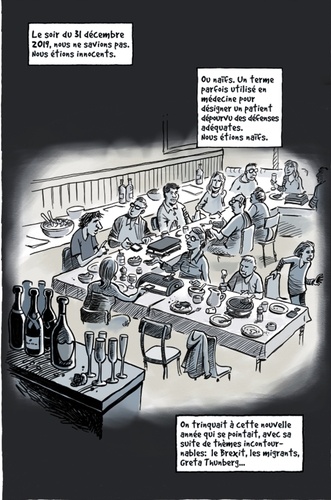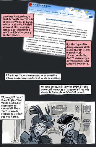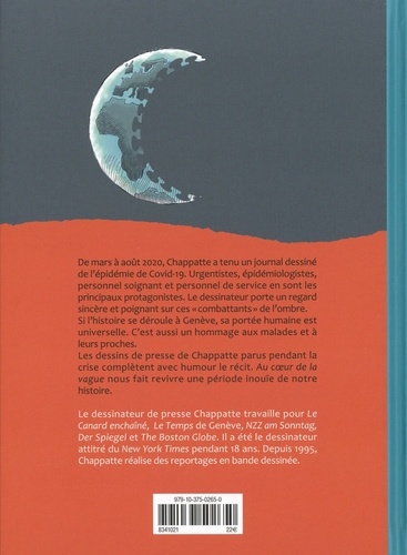 De mars à août 2020, Chappatte a tenu un journal dessiné de l'épidémie de Covid-19. Urgentistes, épidémiologistes, personnel soignant et personnel de service en sont les principaux protagonistes. Le dessinateur porte un regard sincère et poignant sur ces "combattants" de l'ombre. Si l'histoire se déroule à Genève, sa portée humaine est universelle. C'est aussi un hommage aux malades et à leurs proches. Les dessins de presse de Chappatte parus pendant la crise complètent avec humour le récit. Au coeur de la vague nous fait revivre une période inouïe de notre histoire.
