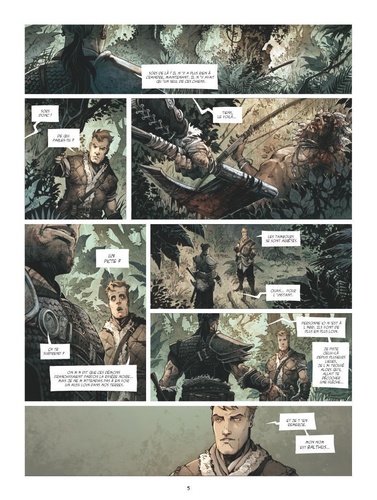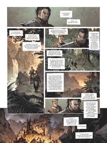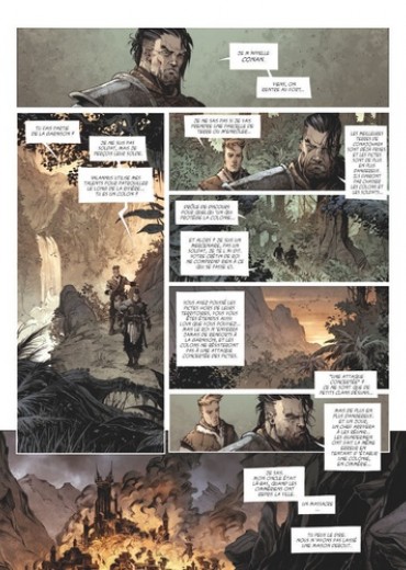 " La civilisation n'est pas naturelle. Elle résulte simplement d'un concours de circonstances. " Le pays picte est une jungle obscure où la frontière entre civilisation et barbarie est mince. Une seule chose la symbolise : la rivière noire, dont on prétend qu'aucun homme blanc n'a pu la traverser et en revenir vivant. Aucun, sauf Conan. C'est au coeur de cet enfer vert que le Cimmérien fait la rencontre de Balthus, un jeune paysan volontaire qu'il sauve in extremis des griffes de farouches guerriers pictes. Ensemble, ils tenteront de prêter main forte aux colons qui se sont établis ici, sur ces terres hostiles, dans le dernier bastion de la civilisation. Avec une dizaine d'hommes, ils vont devoir retrouver le puissant sorcier Zogar Sag avant qu'il ne réussisse à unir les clans et engager son invasion sanglante... Les auteurs de La Licorne redonnent vie à Au-delà de la rivière noire, réputée comme l'une des meilleures histoires de Conan. Un récit survivaliste et guerrier emporté par le rythme implacable du scénario de Mathieu Gabella et la force du trait d'Anthony Jean.