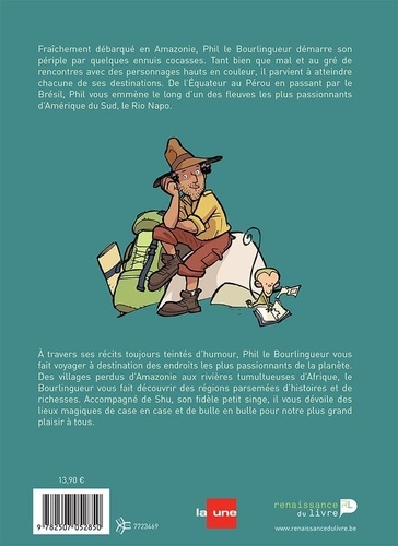 Fraîchement débarqué en Amazonie, Phil le Bourlingueur démarre son périple par quelques ennuis cocasses. Tant bien que mal et au gré de rencontres avec des personnages hauts en couleur, il parvient à atteindre chacune de ses destinations. De l'Equateur au Pérou en passant par le Brésil, Phil vous emmène le long d'un des fleuves les plus passionnants d'Amérique du Sud, le Rio Napo. A travers ses récits toujours teintés d'humour, Phil le Bourlingueur vous fait voyager à destination des endroits les plus passionnants de la planète. Des villages perdus d'Amazonie aux rivières tumultueuses d'Afrique, le Bourlingueur vous fait découvrir des régions parsemées d'histoires et de richesses. Accompagné de Shu, son fidèle petit singe, il vous dévoile des lieux magiques de case en case et de bulle en bulle pour notre plus grand plaisir à tous.