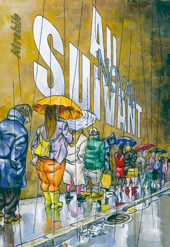 Il faut le savoir : Noyau est un salaud. Ne l'invitez pas : une fois chez vous, il s'assoira dans un coin, ne pipera pas un mot, mais observera vos moindres gestes d'un oeil aussi placide que perçant. Puis une fois rentré chez lui, il sortira ses plus belles gouaches, s'armera d'un pinceau bien trop usé, et fera de vous ou vos proches un portrait aussi beau (dans la forme) qu'acide (dans le fond). On vous prévient : Noyau est un sale type. On le voit bien dans ce livre, Au suivant, composé d'une suite de portraits qui se déploient systématiquement sur deux pages, comme celui de Melvin, qui décide de se passer de tout, mais pas de l'aide financière de ses parents ; Nino, hipster barbu, qui prend tellement de soin à préparer son expresso que l'heure de l'apéro arrive avant le première tasse ; ou Odile, qui ne partage pas ses théories complotistes avec son fils, car comment savoir si celui-ci n'est pas un extra-terrestre ? ... Méfiez-vous : Noyau est un sale type. Pourtant, par le passé, certains éditeurs lui ont accordé leur confiance, à l'instar de Frédéric Pajak, qui, au sein des Cahiers Dessinés, a publié ses précédents livres, comme Dessins au doigt, L'Art de Vivre ou Les Doigts sales ; ou encore Actes Sud, chez qui il a commis l'Ouf, en compagnie d'Anna Sommer. Des livres tous magnifiques, et c'est peut-être là que réside le mystère Noyau : comment un être aussi malfaisant et dangereux peut être également un dessinateur aussi génial ? Bon, en tout cas on vous aura averti, Noyau est méchant, comme son livre. Méchant et même féroce envers ce triste monde et ceux qui le peuplent, on pourrait même dire carrément cinglant et politiquement peu correct, mais il faut bien l'admettre : à l'arrivée c'est bon, et ça fait du bien.