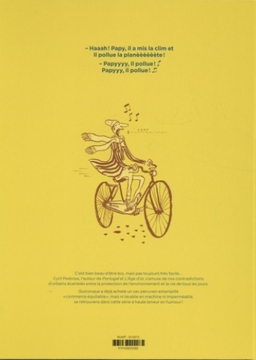 C'est bien beau d'être bio, mais pas toujours très facile... Cyril Pedrosa, l'auteur de Portugal et L'Age d'or, s'amuse de nos contradictions d'urbains écartelés entre la protection de l'environnement et la vie de tous les jours. Quiconque a déjà acheté un sac péruvien estampillé "commerce équitable", mais ni lavable en machine ni imperméable, se retrouvera dans cette série à haute teneur en humour !