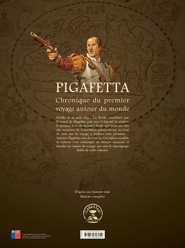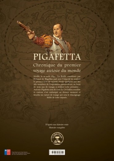 Séville, le 10 août 1519... La flotille constituée par Fernand de Magellan part avec l'objectif de réaliser le premier tour du monde ! Seuls quelques-uns des 260 membres de l'expédition parviendront, au bout de trois ans de voyage, à réaliser cette première... Antonio Pigafetta sera de ceux-là. Cet italien sensible et curieux s'est embarqué au dernier moment et tiendra un carnet de voyage qui sera le témoignage fidèle de cette odyssée.