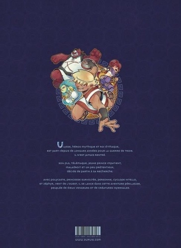 Ulysse, héros mythique et roi d'Ithaque, est parti depuis de longues années pour la guerre de Troie. Il n'est jamais rentré. Son fils, Télémaque, jeune prince impatient, maladroit et un peu prétentieux, décide de partir à sa recherche. Avec polycaste, princesse survoltée, personne, cyclope intello et Zéphyr, vent de l'ouest, il se lance dans cette aventure périlleuse, peuplée de dieux vengeurs et de créatures infernales.