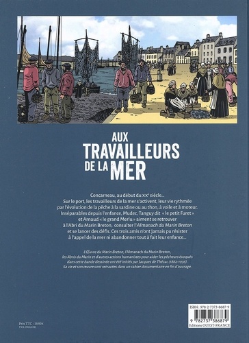 L'action de cette bande dessinée se situe entre 1906 et 1958. Elle retrace la vie de trois amis, marins-pêcheurs de Concarneau qui n'avaient d'autre destin que la mer. Une plongée historique en images au coeur de la Bretagne littorale de la première moitié du XXe siècle avec en toile de fonds l'action philanthropique de Jacques de Thézac, créateur des Abris du Marin et de l'Almanach du Marin Breton. L'histoire des Abris du Marin (leur vocation, les activités proposées) et de l'Oeuvre de l'Almanach du Marin Breton sont évoqués de façon très illustrée (avec des photos d'archives...) dans un cahier en fin d'ouvrage.