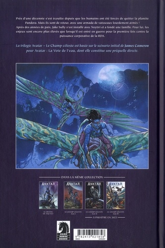 LE CHAMP CELESTE est une trilogie qui sert de préquelle à AVATAR 2 : La Voie de l'eau. Ce récit est basé sur le scénario initial d'Avatar 2, par James Cameron. L'univers s'étend grâce à cette série d'albums de BD. Cela fait presque une décennie que les humains ont été forcés de quitter Pandora. Mais ils sont de retour avec une armada de vaisseaux lourdement armés ! Après des années de paix, Jake Sully s'est installé avec Neytiri et a fondé une famille. Pour lui, les enjeux sont donc encore plus importants que la dernière fois où il est entré en guerre contre la puissance corporative de la RDA.