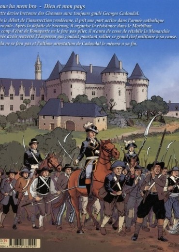 Doue ha mem bro - Dieu et mon pays : cette devise bretonne des Chouans aura toujours guidé Georges Cadoudal. Dès le début de l'insurrection vendéenne, il prit une part active dans l'armée catholique et royale. Après la défaite de Savenay, il organise la résistance dans le Morbihan. Le coup d'état de Bonaparte ne le fera pas plier, il n'aura de cesse de rétablir la Monarchie après avoir renversé l'Empereur qui voulait pourtant rallier ce grand chef militaire à sa cause. Cela ne se fera pas et l'ultime arrestation de Cadoudal le mènera à sa fin.