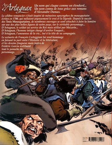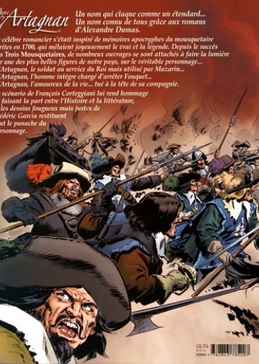 Un nom qui claque comme un étendard ? Un nom connu de tous grâce aux romans d'Alexandre Dumas. Le célèbre romancier s'était inspiré de mémoires apocryphes du mousquetaire écrites en 1700, qui mêlaient joyeusement le vrai et la légende. Depuis le succès des Trois Mousquetaires, de nombreux ouvrages historiques se sont attachés à faire toute la lumière sur une belle figure de notre pays, sur le véritable personnage ! D'Artagnan, le soldat au service du Roi mais utilisé par Mazarin... D'Artagnan, l'homme intègre chargé d'arrêter Fouquet... D'Artagnan, l'amoureux de la vie, tué à la tête de sa compagnie. Le scénario de François Corteggiani lui rend hommage en faisant la part entre l'Histoire et la littérature tandis que les dessins fougueux mais justes de Frédéric Garcia restituent tout le panache du personnage.