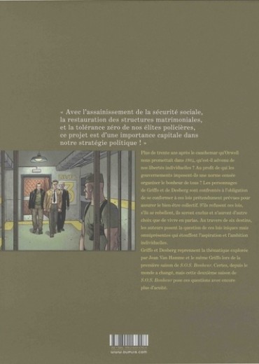 En suivant le quotidien de trois personnages plongés dans ce futur qui risquerait un jour de devenir le nôtre, Stephen Desberg met en exergue les dérives de nos sociétés dans un premier album glaçant de justesse, dont la noirceur est encore renforcée par le trait expressif et réaliste de Griffo.