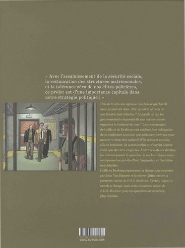 En 1988 paraissait, dans le tout neuf label "Aire Libre", le premier tome de "S.O.S. bonheur", une suite de fables dystopiques qui mettaient à nu les angoisses de la société d'alors. Presque trente ans plus tard, nos craintes ont-elles changé ? C'est la question que pose aujourd'hui Stephen Desberg avec cette nouvelle saison, à la fois hommage et mise à jour de l'oeuvre initiale de Jean Van Hamme - qui en signe d'ailleurs la préface. Pour répondre à cette question, Stephen Desberg dessine dans ce triptyque les contours d'un monde régi par les penseurs d'extrême droite, un univers dominé par l'argent, les valeurs morales réactionnaires, la figure du mâle ou encore la préférence nationale.