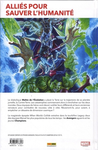 Le diabolique Maître de l'Evolution a placé la Terre sur la trajectoire de sa planète jumelle, la Contre Terre. Les catastrophes commencent alors à s'enchaîner sur les deux mondes. Deux équipes de héros vont devoir oublier leurs différends et leurs anciennes rancoeurs pour combattre de nouveau côte à côte. Réussiront-ils, pour autant, à empêcher un désastre de dimension cosmique ? La magistrale épopée When Worlds Collide entraîne dans le tourbillon Legacy deux des équipes Marvel les plus populaires de tous les temps : les Avengers aguerris et les jeunes Champions.